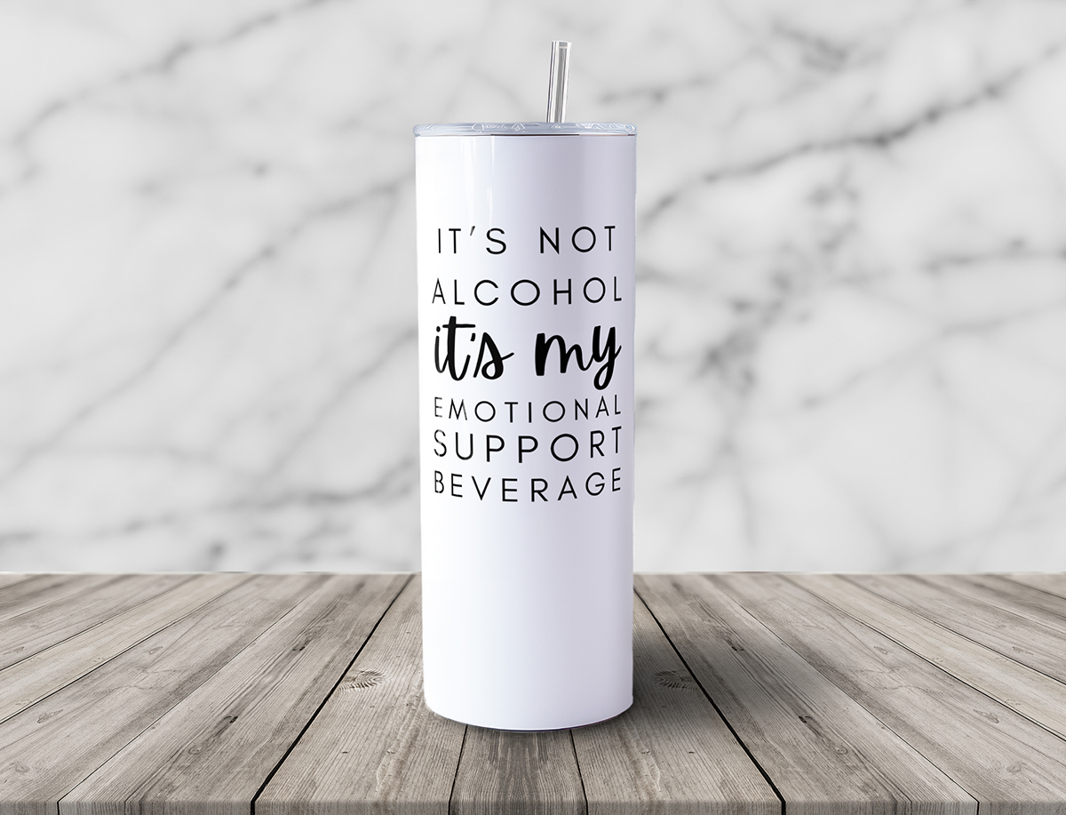 Introducing our witty and relatable 20oz Skinny Tumbler with Straw, proudly featuring the humorous declaration: “It’s Not Alcohol, It’s my Emotional Support Beverage.” Embrace the lighter side of life with this cheeky tumbler that celebrates the role of beverages in soothing the soul.