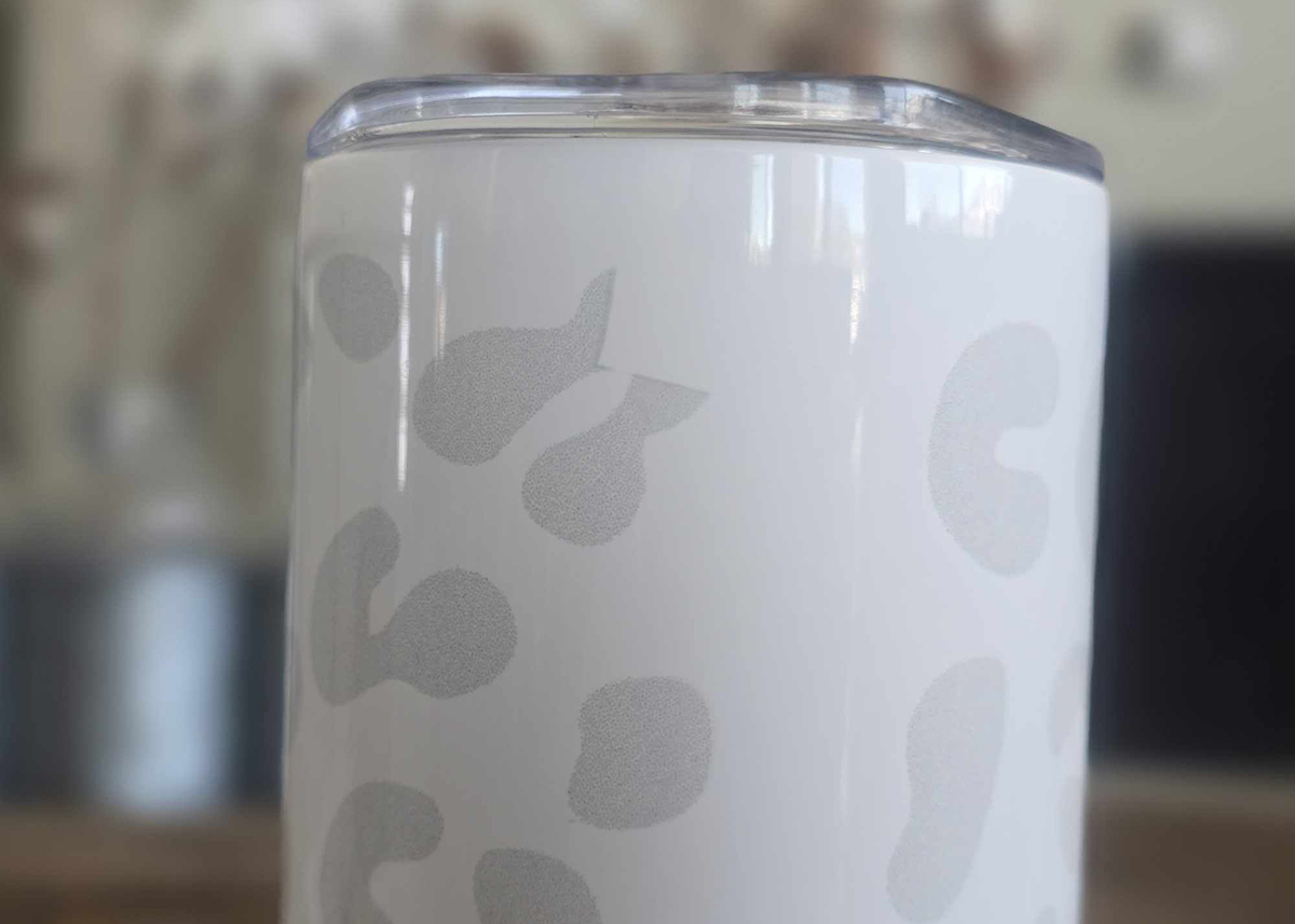 When we made this tumbler we accidentally overlapped the heat tape over a small portion of the design (see close up photo), so we are selling it at a significant savings! There is only one available so if you want it, be sure to order it right away.